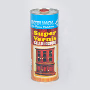 Vernis transparent à base de nitrocellulose et de résine glycérophtalique.